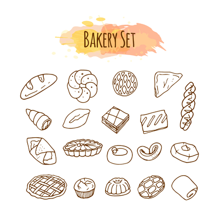 パン屋さんの要素 お菓子のイラスト 手描きベクトルを設定します クリップアートを焼くのイラスト素材 ベクタ Image